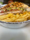 Grilled chicken, tomato, our House Caesar dressing, Parmesan cheese in an herb garlic wrap served with cajun style french fries